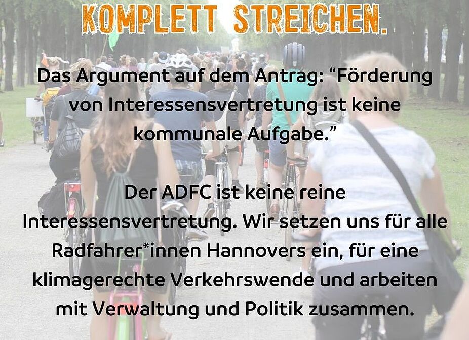 Antrag der CDU, FDP und SPD im Rat der Stadt Hannover auf Kürzung der ADFC-Förderung auf 0 Euro