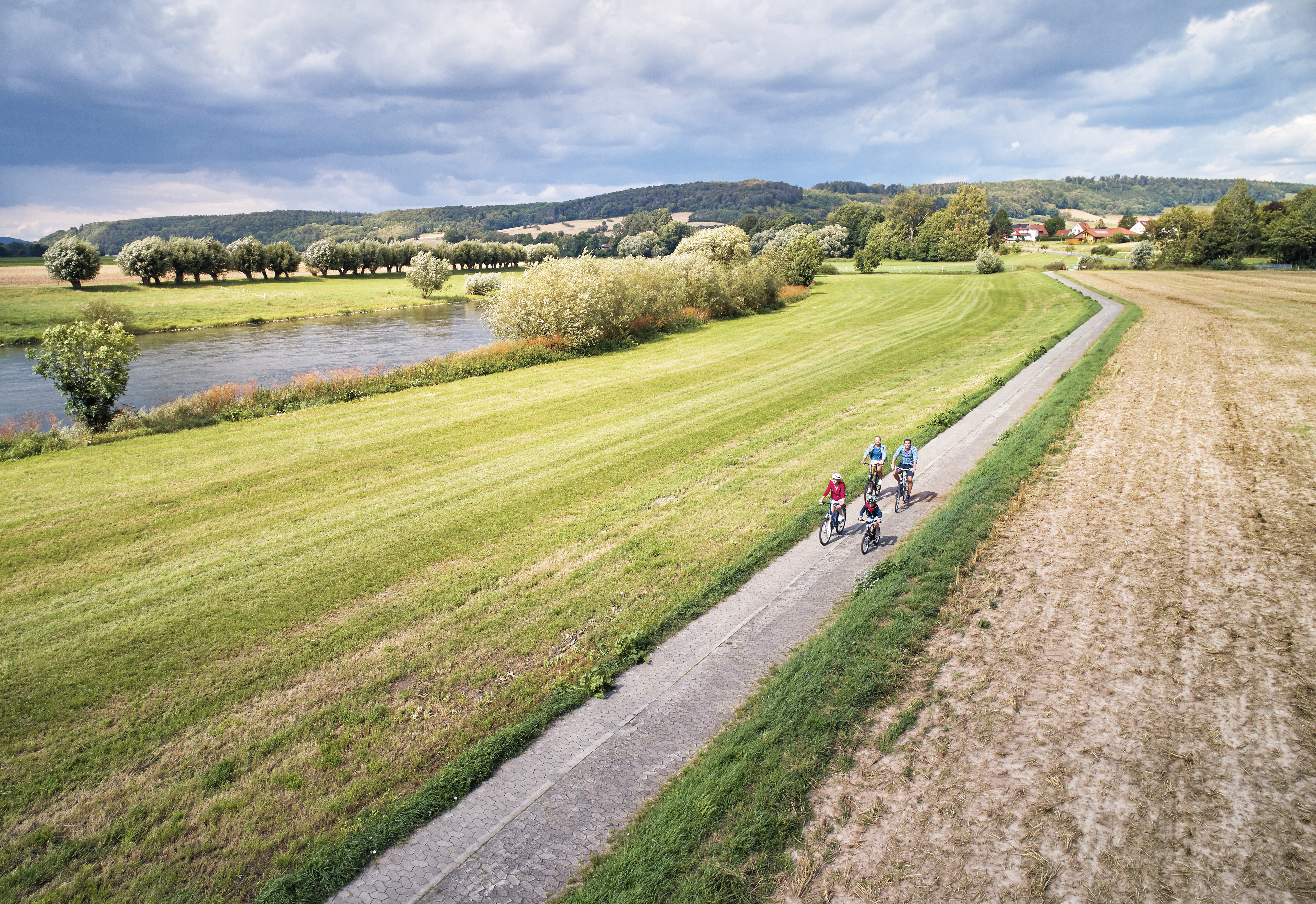Mit der Familie im Radurlaub - hier auf der ADFC-Qualitätsradroute Weser-Radweg. © TMN DZT Jens Wegener Weser-Radweg
